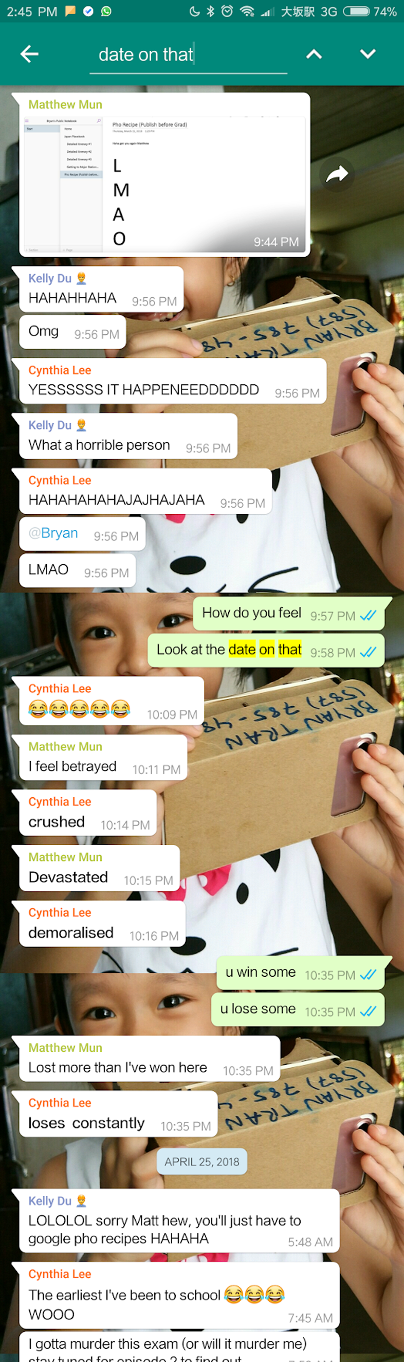 Figure Caption: A rude awakening during the middle of dinner that literally tells me nothing about his inner thoughts.